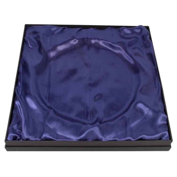 Dieses Etui ist für Ehrenteller mit einem Durchmesser von 37 cm geeignet. Die Etuis haben eine blaue Satin-Innenseite, auf der Sie den Ehrenteller schön präsentieren können.